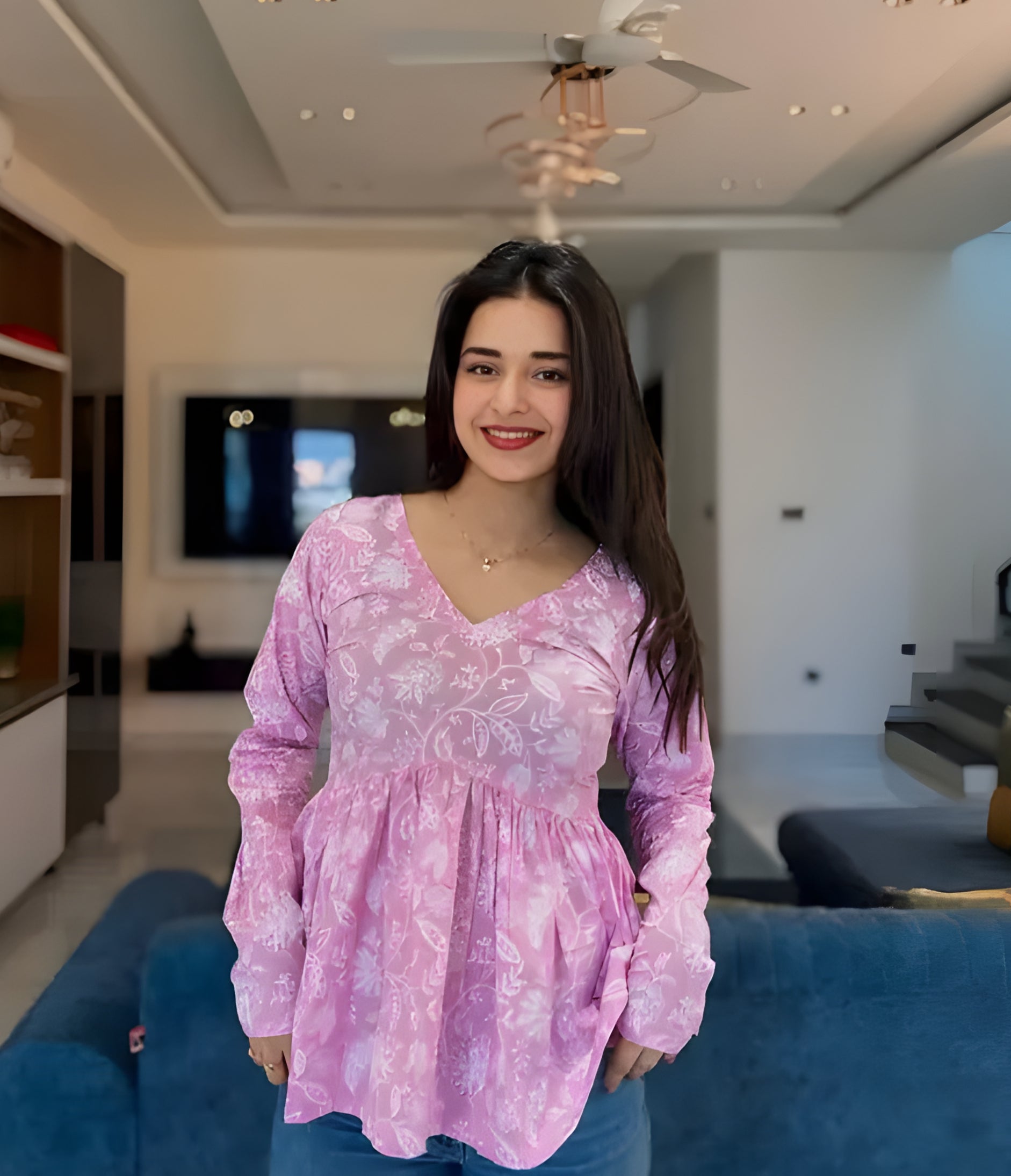 Name : Charming Pink V-Neck Kurti Top – Casual & Everyday Wear